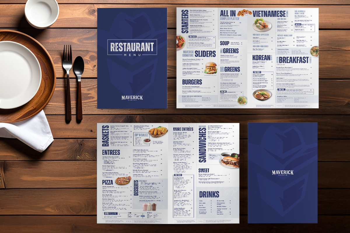 Custom menu designs that are visually engaging, brand-aligned, and built to enhance your customer experience, including full menus, digital displays, table tents, and more.
