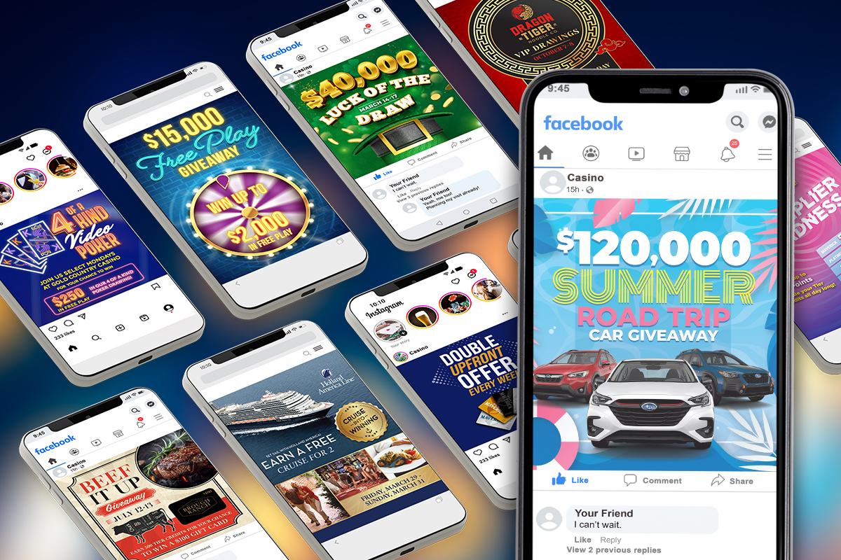 Engaging social media graphics, digital ads, and app assets that keep your casino top of mind. From eye-catching posts and stories to app banners and push notifications, our designs drive clicks, downloads, and guest engagement across every digital touchpoint.